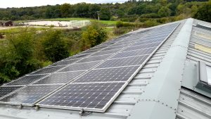 Solar panels on buildings generate power with zero carbon emissions like these on the roof of the CIEEM office. Photocredit: James Cleary.