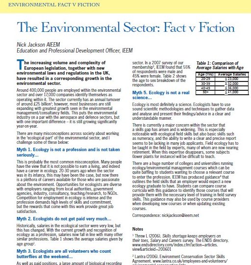This article by CIEEM’s former Training and Career Development Officer, Nick Jackson, highlights some of the myths that exist around the environmental profession.