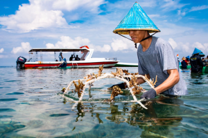 Despite the threats, coral reef restoration is showing promising results. Techniques such as coral gardening and selective breeding for heat-resistant corals are helping reefs adapt to climate change. Local restoration projects, including Reef Stars programs in Indonesia (picture below) and community-led initiatives in the UK Overseas Territories, demonstrate how hands-on efforts can rehabilitate degraded reefs. High-level commitments, such as the UNOC3 Pledge, aim to protect climate-resilient reefs globally, while scientific tools like Wildlife Conservation Society’s global reef map and Adaptation Design Tool help governments and funders prioritise urgent protection. Together, these efforts show that coral reefs can recover and continue to support biodiversity and coastal communities.