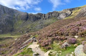 In 1999/2000, sheep were removed from Cwm Idwal NNR following decades of high sheep numbers. The objective was the restoration of upland and arctic-alpine vegetation which had been supressed by grazing. A monitoring programme was set up, from the outset, by the Countryside Council for Wales using a set of permanent recording quadrats; this monitoring continues to the present day, now by Natural Resources Wales. The two photographs show the recovery of ericaceous vegetation, between 22 July 2008 (upper) and 21 August 2025 (lower). Cwm Idwal, Eryri, North Wales © David Parker.